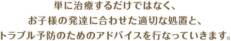 単に治療するだけではなく、お子様の発達に合わせた適切な処置と、トラブル予防のためのアドバイスを行なっていきます。